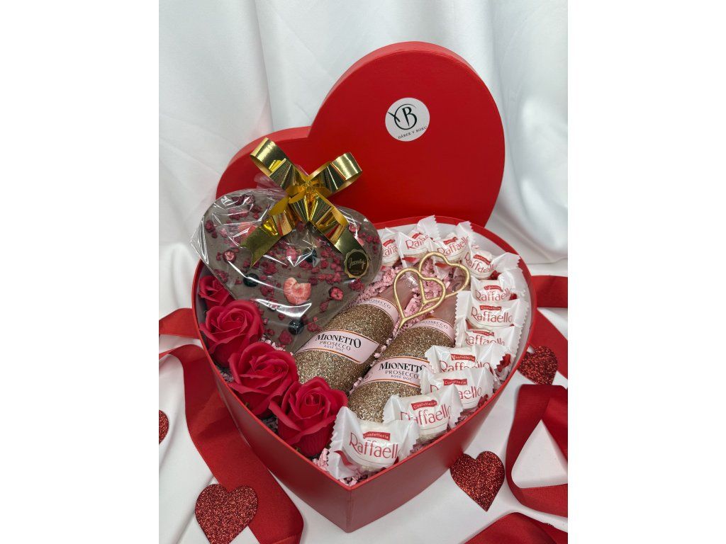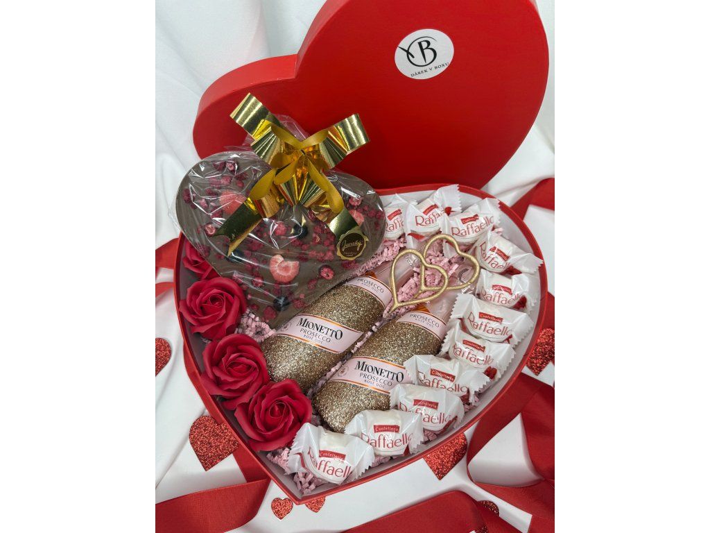 Když chcete říct ,,MILUJI TĚ,, beze slov. Tohle VELKÉ SRDCE je dokonalým vyjádřením lásky, elegance a výjmečnosti. Spojuje luxusní sladkosti, prosecco Mionetto Rosé a růže, které symbolizují vášeň a ňehu.